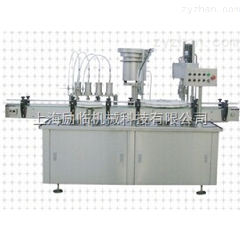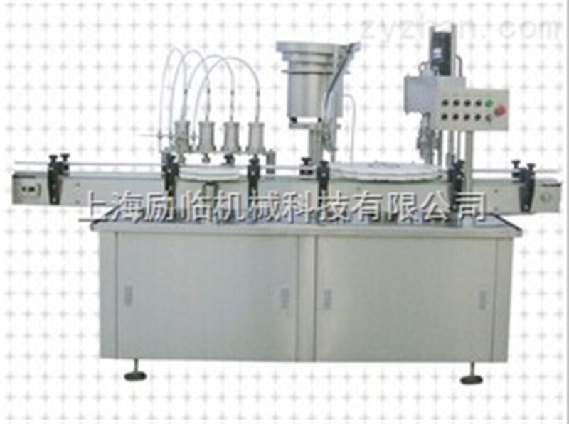 液体灌装旋盖机:本设备使用于塑料瓶,玻璃瓶的灌装,上盖,封口作业。可满足口服剂,外用剂等剂型的生产需要,也可用于农药,化妆品,食品等行业的灌装封口作业。本机有直线式和直角式两种类型,更广泛的使用于不同条件的生产场地。采用快卡式不锈钢泵,灌装精确,拆卸消毒方便。恒扭矩旋盖,气动保护装置,保证封口的密闭性。可选配液面检测,封口密闭检测系统,安全防护性能好。