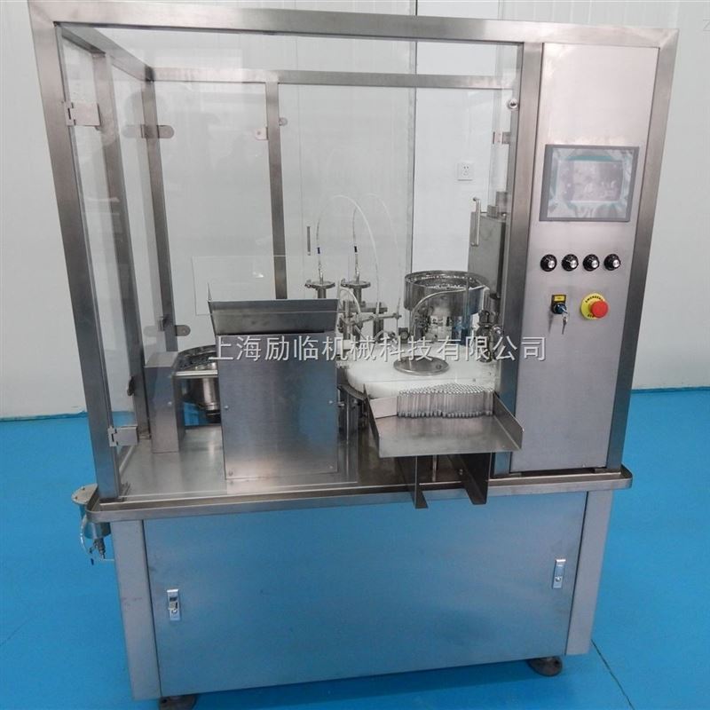 胰岛素灌装机是在引进和吸收*技术的基础上,由我公司自主研发的一款专业针对西林瓶的灌装、上塞、旋(轧)盖机。本机采用日本全进口高精度封闭式凸轮分度工位器,精度高,运行可靠,使用寿命长。该分度器结构简单,长期使用无需维修。