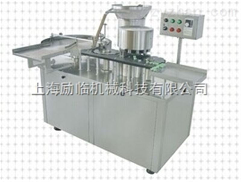 1、把灌好液体并装上盖子的瓶子放到下托盘上,靠在V型支块上,一手扶住瓶子,另一手将手柄朝后往下拉紧,这时托盘托着瓶子向上抬起,直到瓶盖与轧盖头压紧。